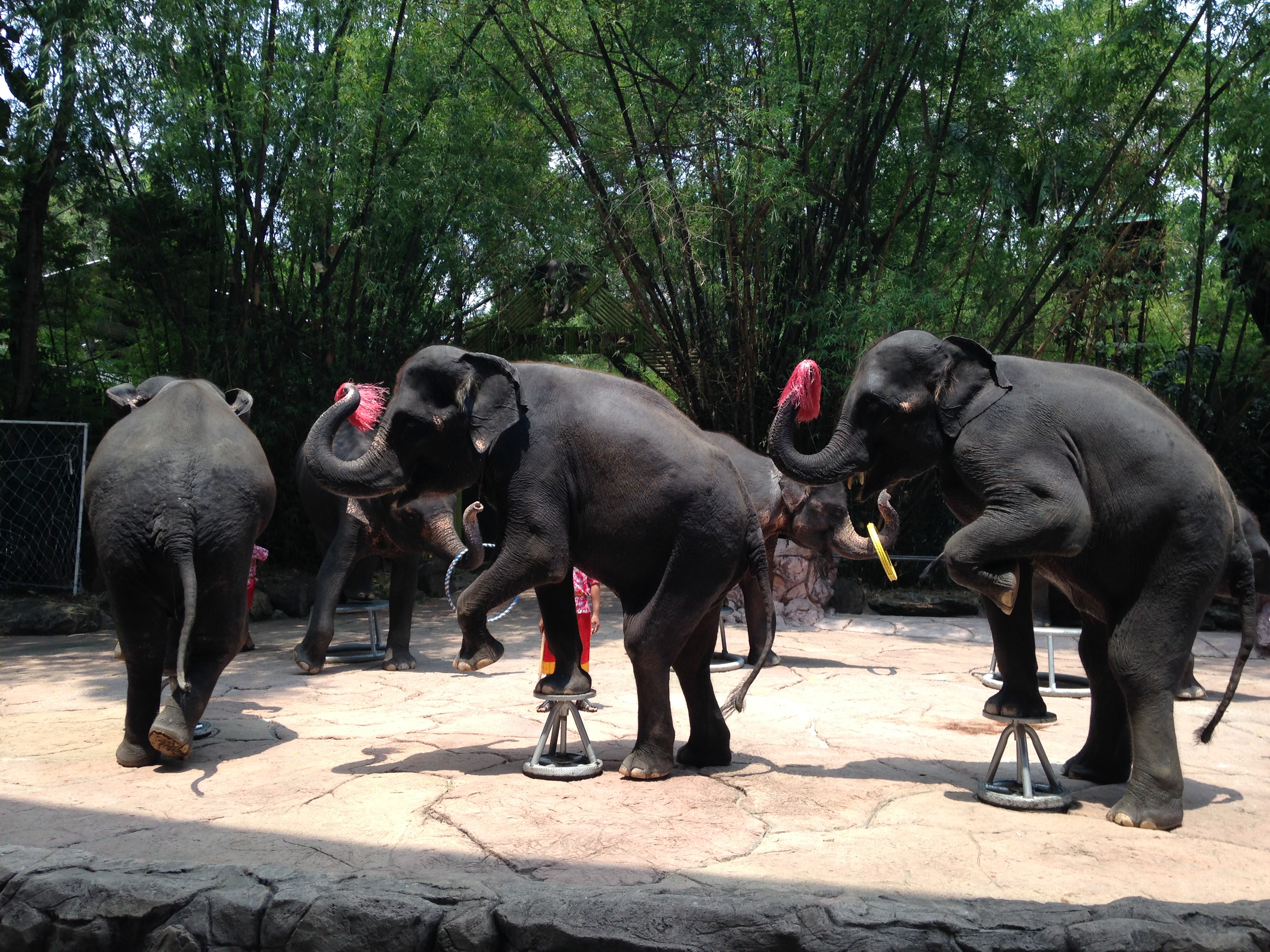 Day 3 at Bangkok was safari world. A Zoo / Safari that is located about 1 hr drive from Central Bangkok. We took a car with a guide. The Zoo has a good variety of animals – 100’s of Giraffes, many Tigers , Lions , Bisons – but the highlight were the shows – Orangutan , Elephant , Sea Lion and Dolphin shows were big hits with the kids .