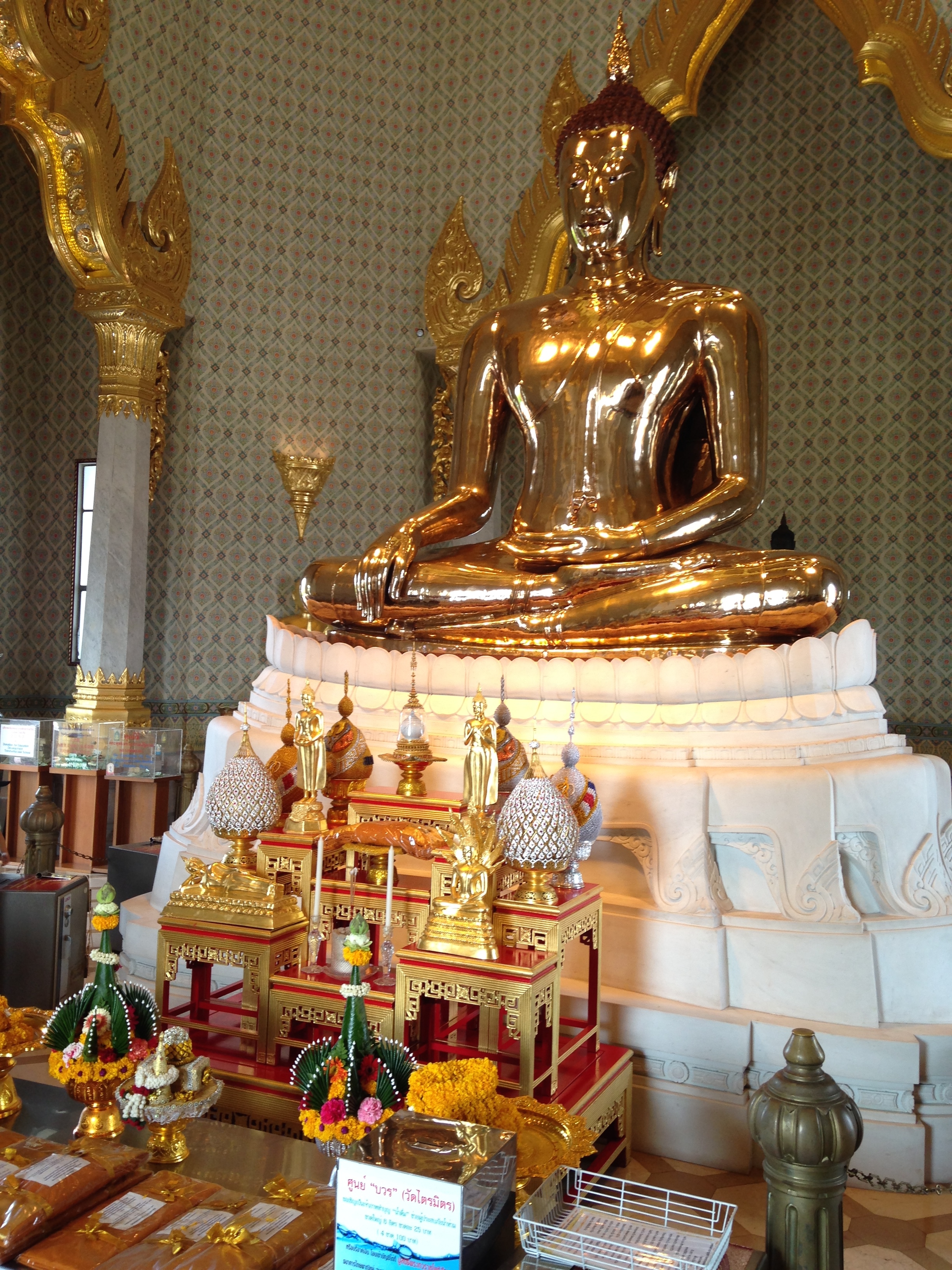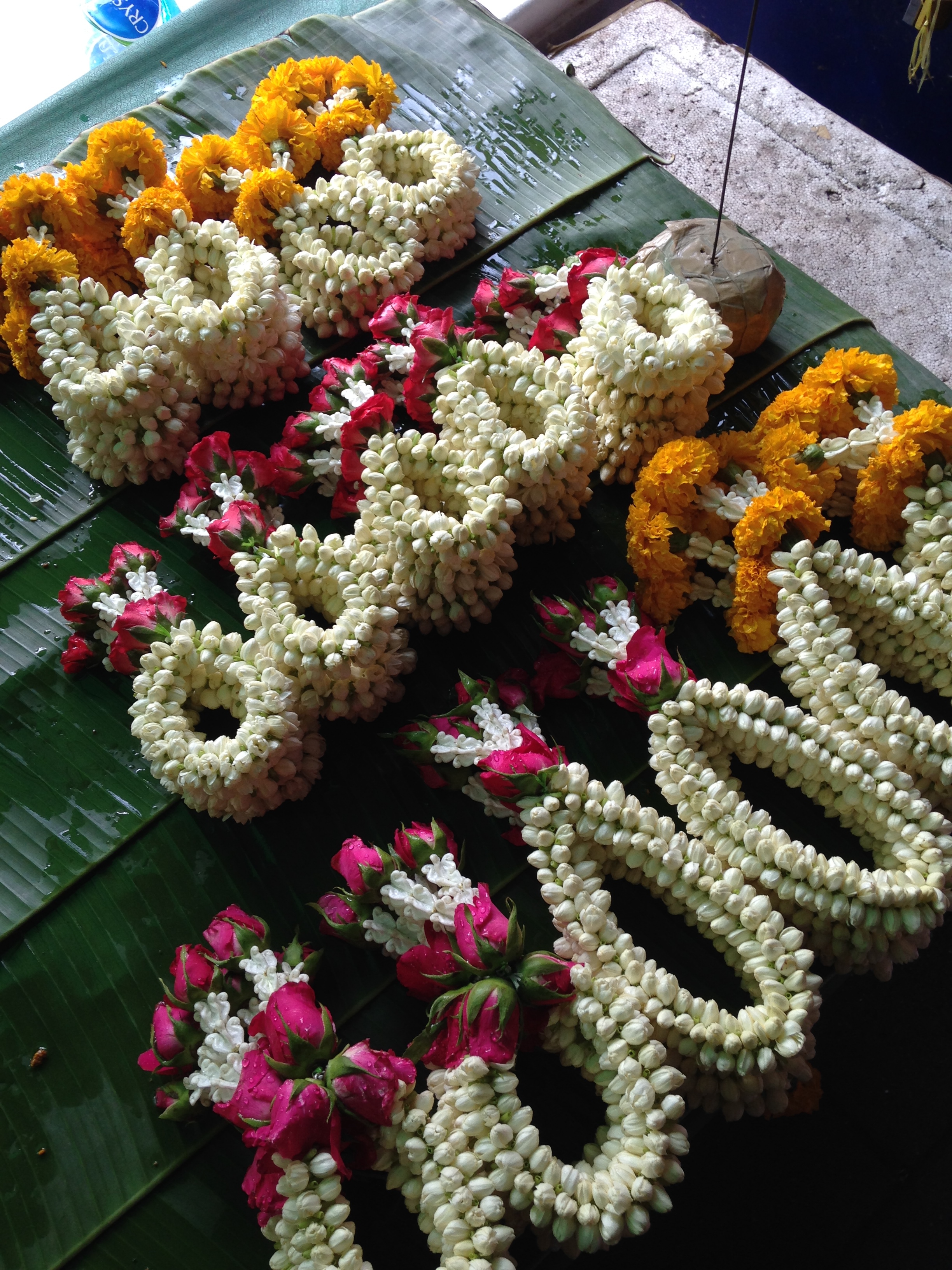 On the last day our flight was at 9 PM , the hotel had given us a late checkout at 4 PM – so we had the full day to ourselves. The Travel Desk at the Hyatt has a variety of packages to choose from – we settled on the Day trip to the 3 famous Temples ( Golden Buddha , Sleeping Buddha , Emerald Buddha) and the Grand Palace. A drive thru Little India & China Town and a walk through the flower market. This market again brings back memories of India as you see fresh flowers and garlands piled up in heaps.
