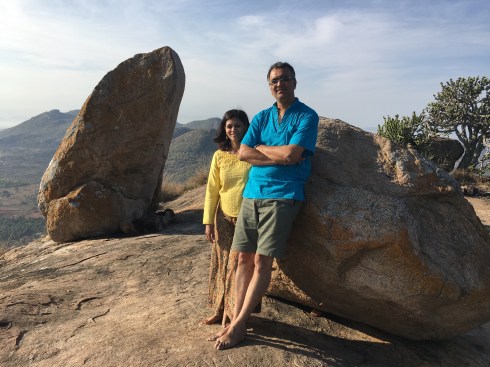 The property is surrounded by the Karadi Gudda & Banantamari Reserve forests and there are nice short treks ( 2 hrs ). We did a morning trek starting at 7 AM and back by 9 AM. A short ride followed by a 30 min trek to a summit for a great view – we also spotted stones that looked like Menhirs from Asterix. The summit has a small rock cut image of Narasimha and local villagers pay their respects regularly here.