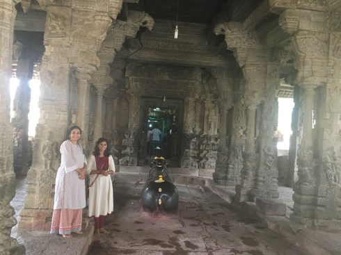 The trip to Devrayanidurga was more like a day trip to a hill station. It was London weather , misty and cool and we soaked it all in with the green as green greenery engulfing us up the winding road to the beautiful and serene temple of Lord Narasimha. Devrayanadurga means “fort of rock” and this beautiful temple is ensconced between rocky hills with a beautiful water body behind at an altitude of about 4000 feet above sea level. ( Ooty is 7000 feet – so this is high)