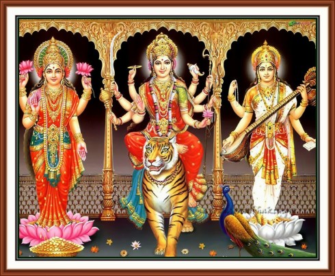 Although called Mahishasura Mardhini the Shlokas cover 3 aspects of the Devi – As Durga, Lakshmi & Saraswathi