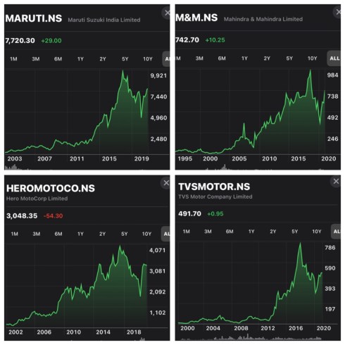 Companies like Maruti, Hero, TVS and many component companies have rewarded investors handsomely in the last 20 years and the trend will continue. Component and battery manufacturers Like Exide & Amara Raja who supply to the Industry and export have also performed handsomely. This year the sector has been impacted and inspite of markets reaching an all time high these stocks still have some distance to go.