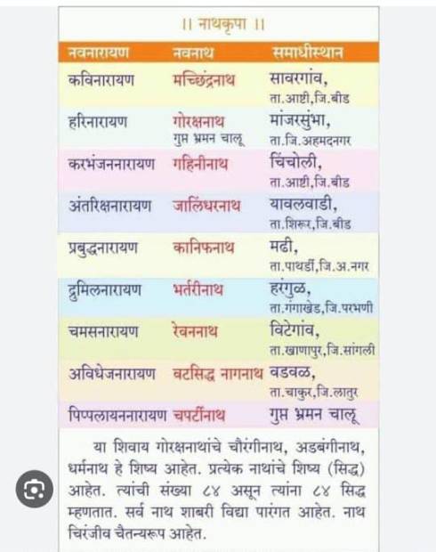 Navnath are the nine saints on whom the Nath Sampradaya, the lineage of the nine gurus, is based.