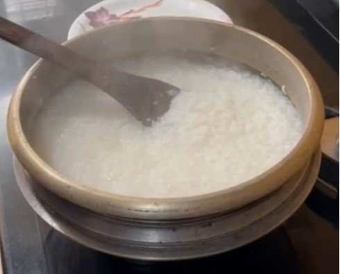 3. Wash the rice couple of times and strain to remove any impurities. Add 2 cups of water to Uruli and let the water come to boil. Add the rice to the boiling water and stir for about half an hour till rice is cooked. Keep adding some hot water occasionally as and when required till rice is 80% cooked. Keep gas in medium flame on large burner. Ensure the rice is not burnt, overcooked or raw.