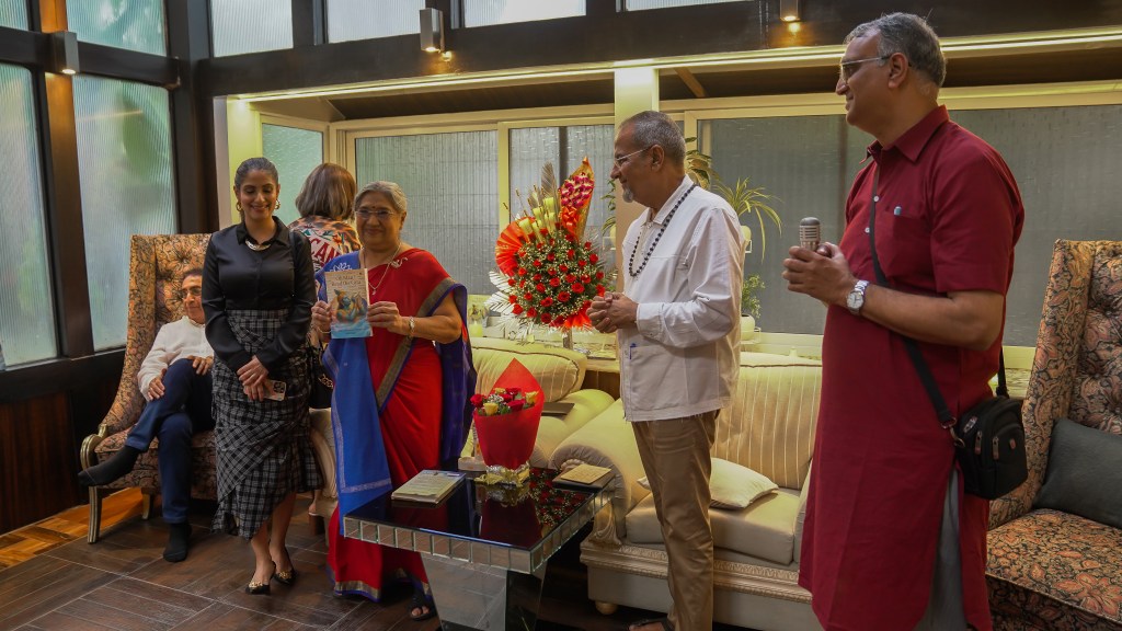 Hansaji loved the title and simplicity of the book Oh Man! Read The Gita. She praised the compilers. They performed a great service. They brought the message of the Gita in a simple to read manner. In her 30-minute talk, she highlighted the core aspects of the Gita. She enthralled the audience with her fluency, clarity, and powerful oratory. Her key message was that the Gita is a guide for daily life. It offers powerful teachings for everyone.